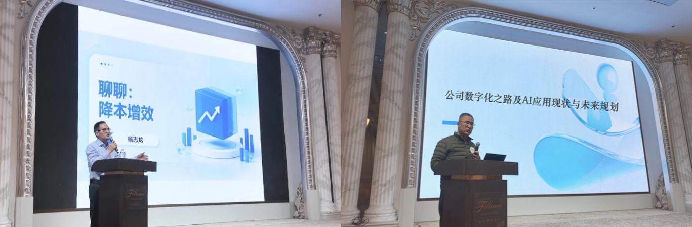 财务总监杨志龙围绕降本增效、精益管理作专题发言,并提出各环节务实举措。技术总监孙栋以《公司数字化之路·AI应用现状与未来规划》为题作专题分享,总结数字化应用场景,展望AI在业务运营与日常办公中的融合应用。